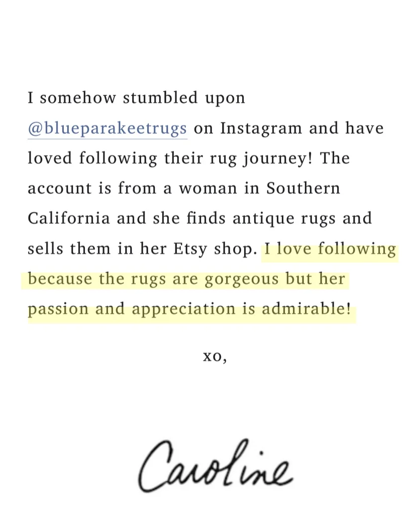 Caroline Curran, San Francisco based blogger, photographer, and founder of Bundle of Joy, featured Blue Parakeet Rugs on her popular lifestyle blog Just Simple Joys in April 2018. Antique rugs are my passion and my business. It’s so gratifying when pros like Caroline highlight that!